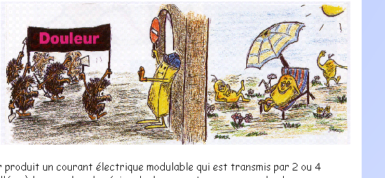 La neurostimulation transcutanée consiste à stimuler des récepteurs sensitifs cutanés au moyen d'un courant électrique délivré par un générateur portable. La stimulation de ces récepteurs entraînera le blocage du message douloureux au niveau de la moelle épinière.